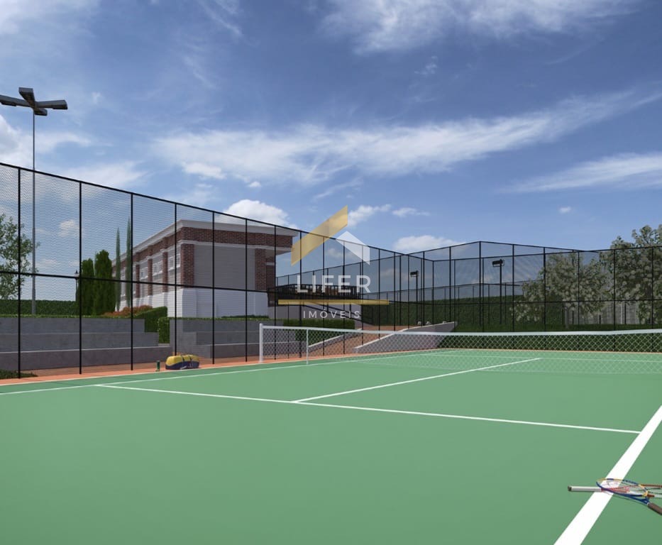 quadra de tênis com arquibancada e vestiários, área gourmet com cozinha