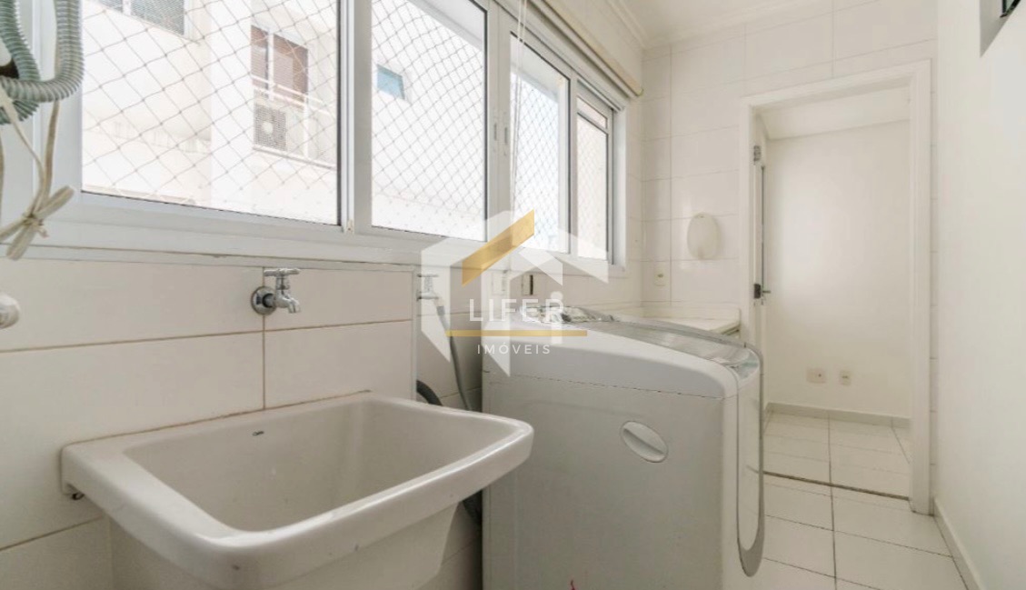 O apartamento conta também com um lavabo finamente decorado, perfeito para receber visitas com estilo. Todos os espaços são enriquecidos por móveis planejados de alta qualidade, oferecendo praticidade e sofisticação em cada ambiente.