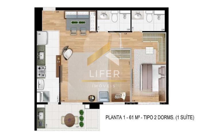 Apartamento muito bem localizado de 2 dormitórios, sendo 1 suite, com armários planejados, 2 banheiros também com armários, 1 na suite e 1 social, living para 2 ambientes, 1 sala de tv e 1 sala de jantar, com aparelho de ar condicionado, sacada gourmet, cozinha planejada, área de serviço e 1 vaga coberta..