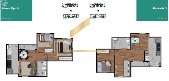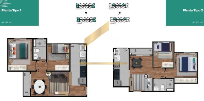 Unidades com 42 a 45m², perfeito para quem busca praticidade e conforto. Além disso, o condomínio conta com portaria 24 horas, trazendo mais segurança e tranquilidade para sua rotina.
