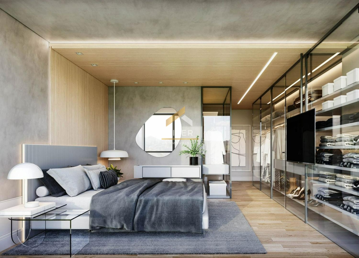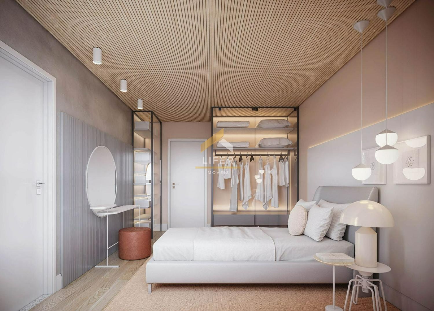 Piso de madeira nas suítes e circulação.