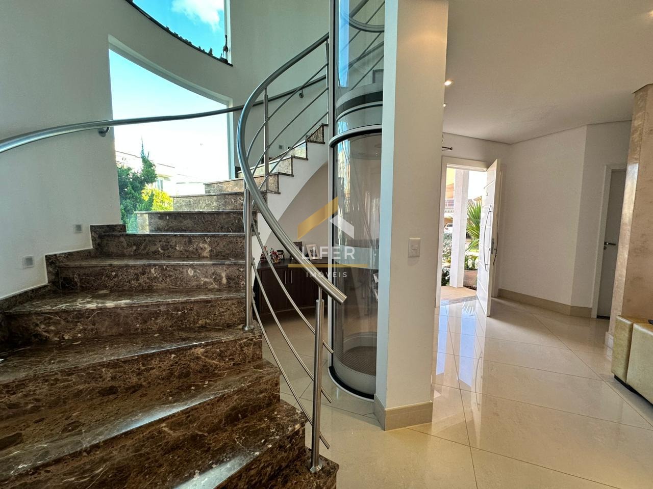 Esta belíssima casa possui terreno diferenciado de esquina e conta com elevador.