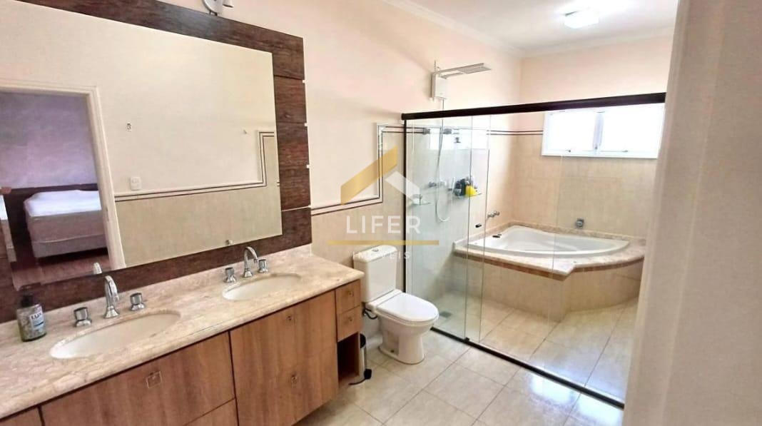 No pavimento superior, são 4 suítes com armários planejados, ar condicionado e sacada coberta ou descoberta, sendo a máster com hidromassagem e closet. Além disso, possui um hall com roupeiro.