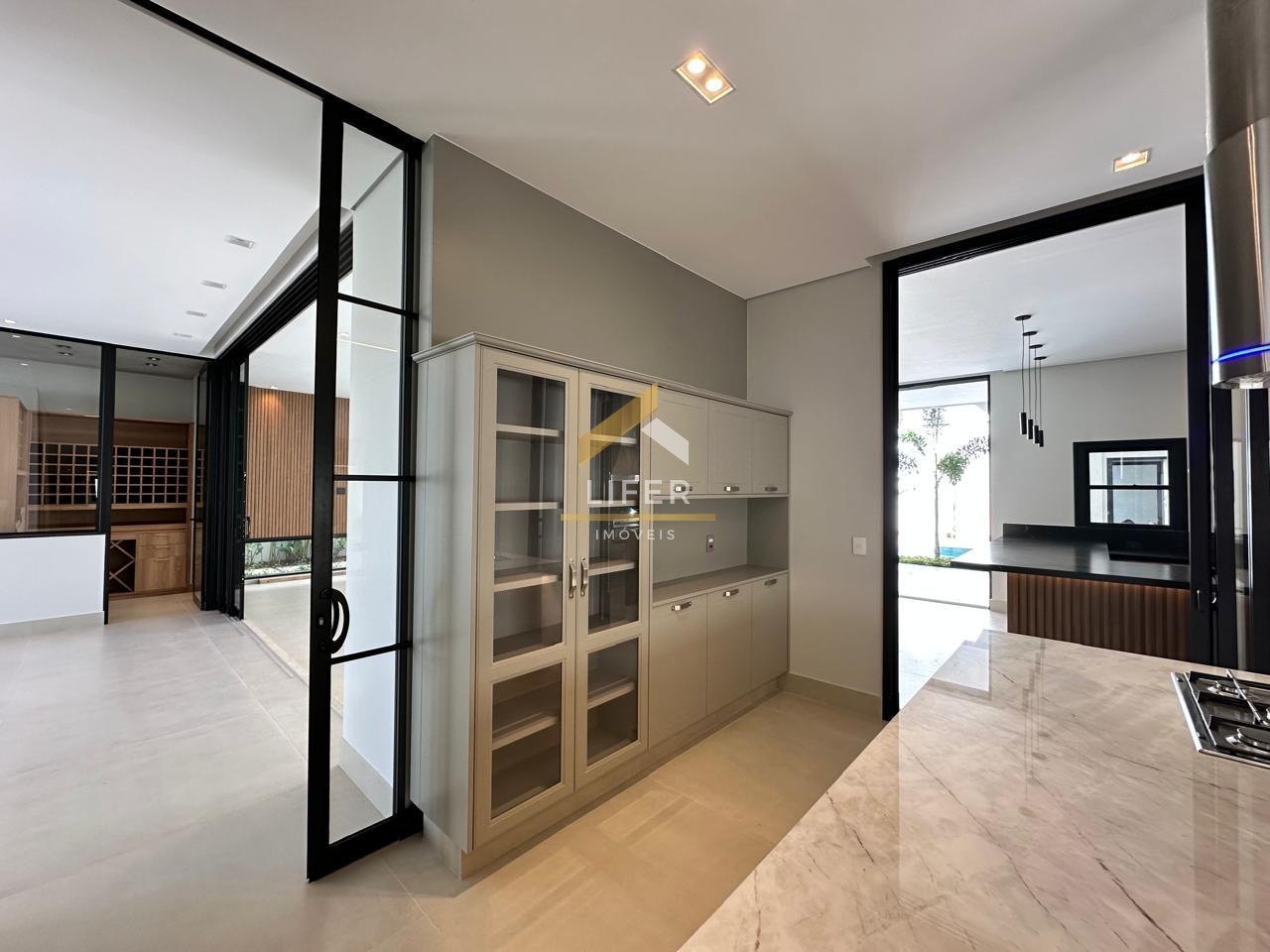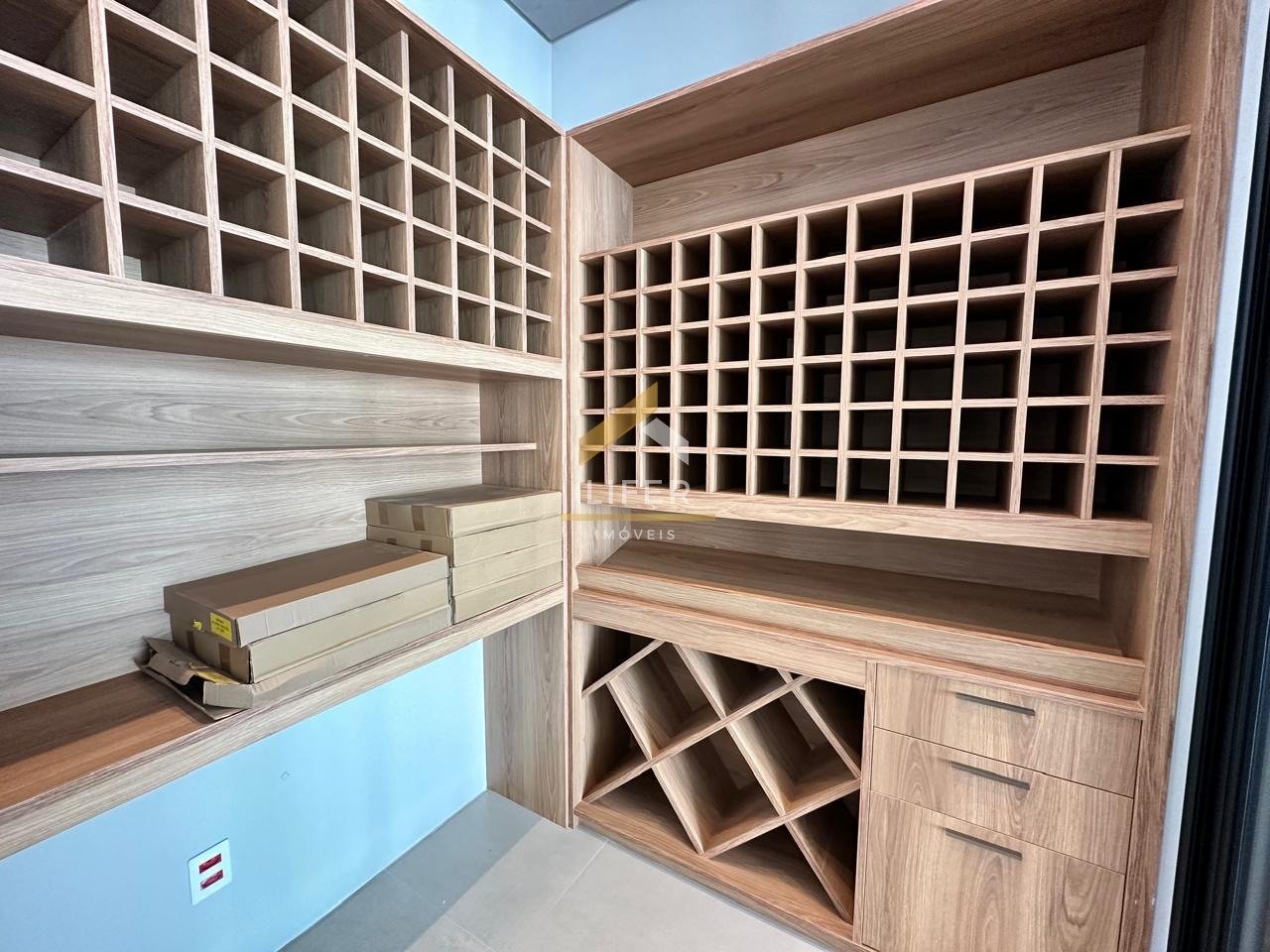 Para os amantes de um bom vinho, a casa conta com uma adega climatizada que garante a preservação ideal das suas melhores safras. A praticidade e o luxo são evidentes em cada detalhe, incluindo um elevador que conecta os pavimentos de forma elegante e conveniente.