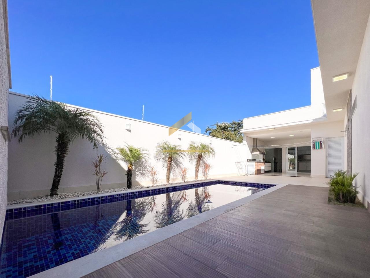 A área externa é um verdadeiro convite ao lazer e bem-estar. O espaço gourmet conta com churrasqueira, coifa em inox, pia ampla e cooktop, tudo cercado por um lindo quintal com paisagismo. A piscina com cascata e iluminação em LED, controlada remotamente, é o toque final para momentos inesquecíveis.