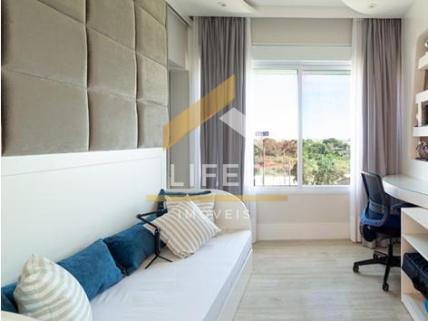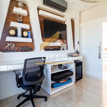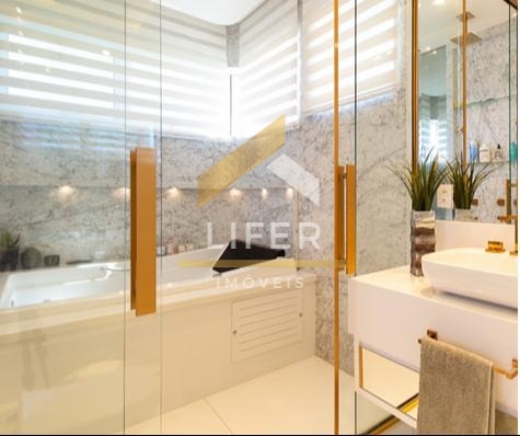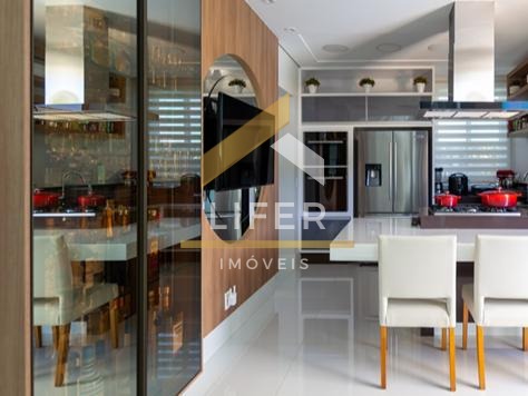 São 3 amplos dormitórios, sendo 2 suítes (ducha dupla na suíte master). Sala de estar e de jantar amplas e integradas, com iluminação natural, pé direito duplo e com decoração ambiente que deixa tudo mais aconchegante. A cozinha é toda equipada e está integrada à área gourmet, tornando prática e versátil a recepção de amigos para qualquer ocasião e com muto estilo.