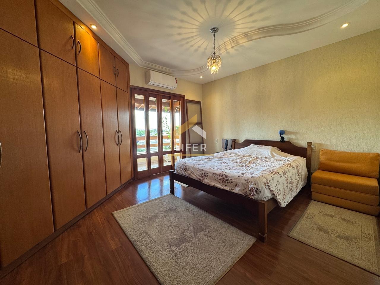 No pavimento superior, está a área íntima da casa, composta por três amplas suítes, climatizadas e com varanda, oferecendo uma vista privilegiada. A suíte máster, possui uma vista permanente para a mata, criando um ambiente sereno e relaxante.