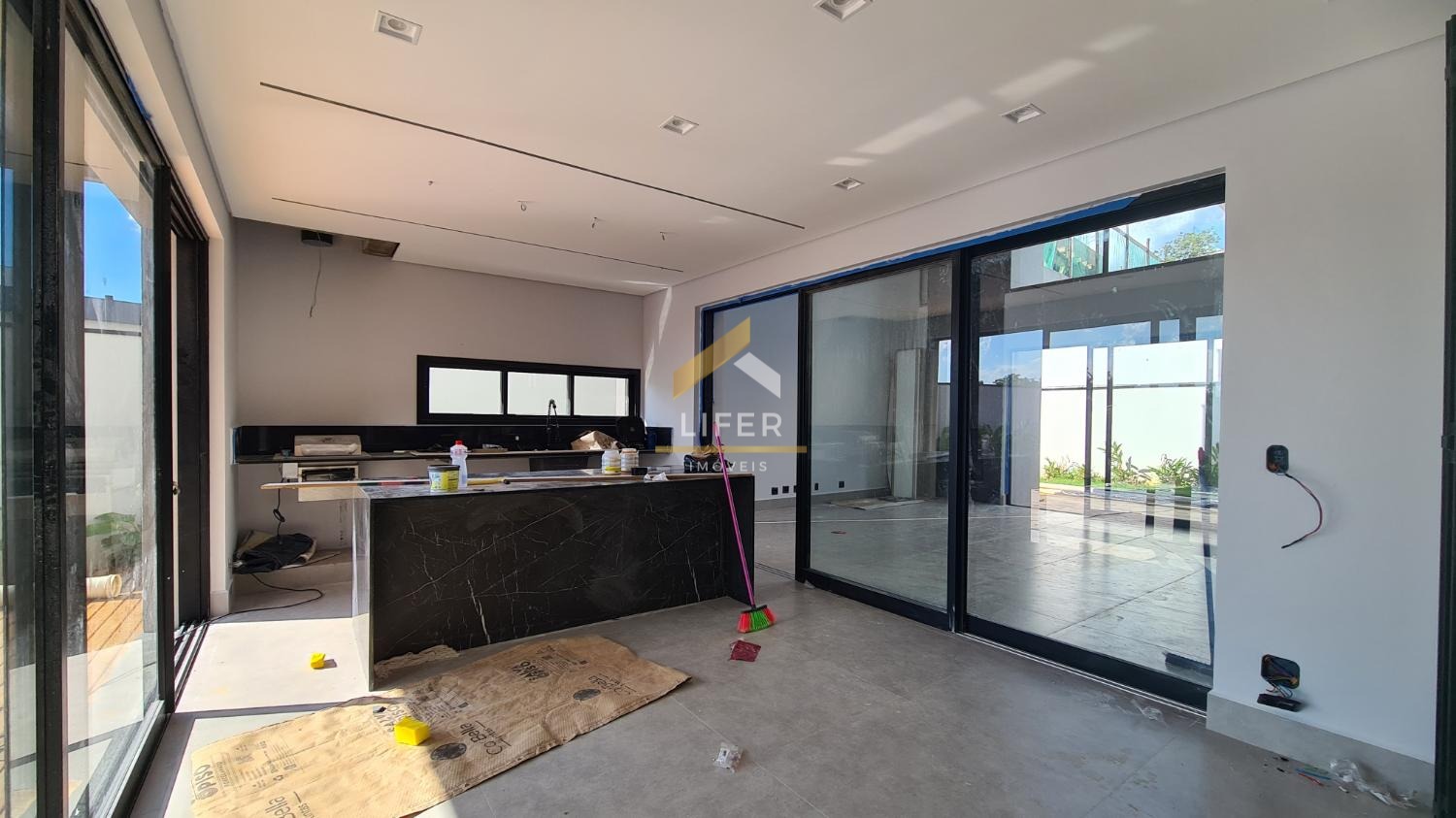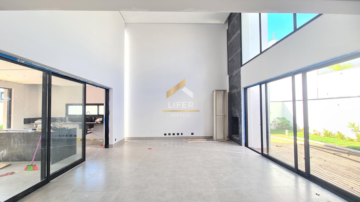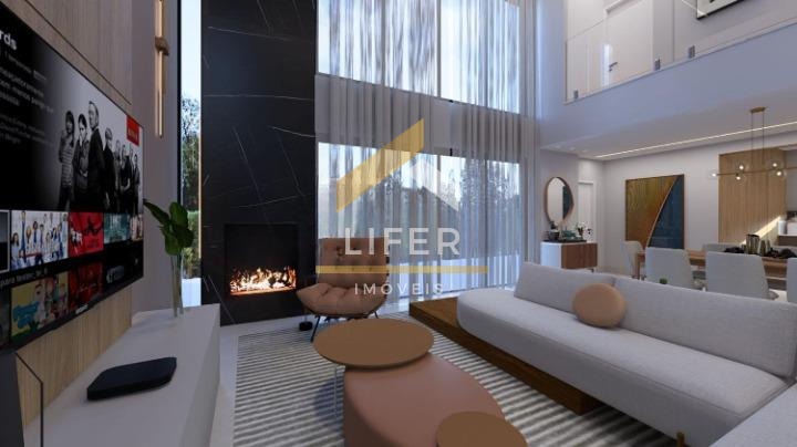 Sala Integrada: Com cozinha e área gourmet, pé direito duplo, criando um espaço amplo e iluminado.