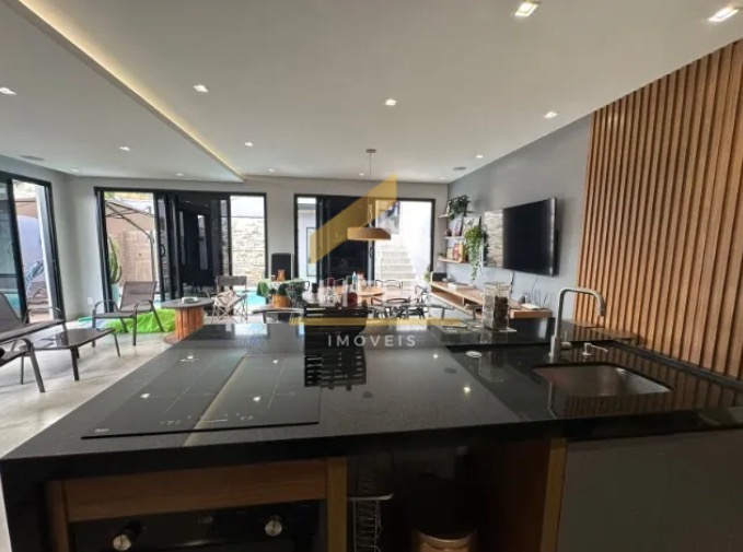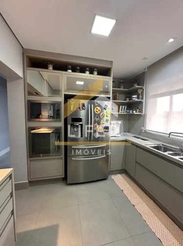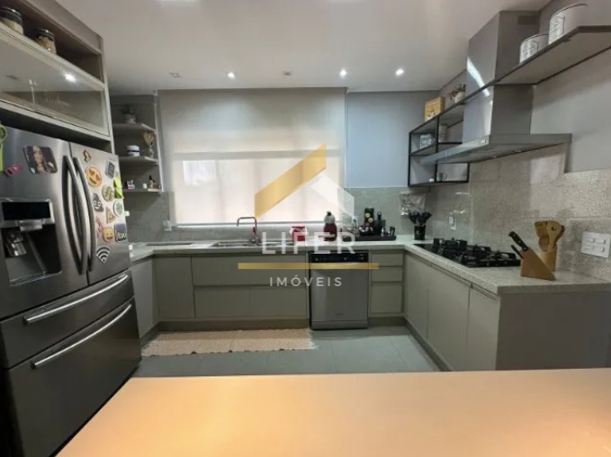Com 4 dormitórios com ar condicionado em todos os quartos, sendo 3 suítes com ármarios planejados, escritorio planejado, sala de estar, sala de TV com planejado, sala de jantar, barzinho planejado, cozinha ármarios planejados, lavanderia ármarios planejados, banheiro social, vagas de garagem, 400 m² útil, Com área Gourmet ármarios planejados churrasqueira, piscina, sauna, banheiro externo, sacada, quintal, segurança 24h.