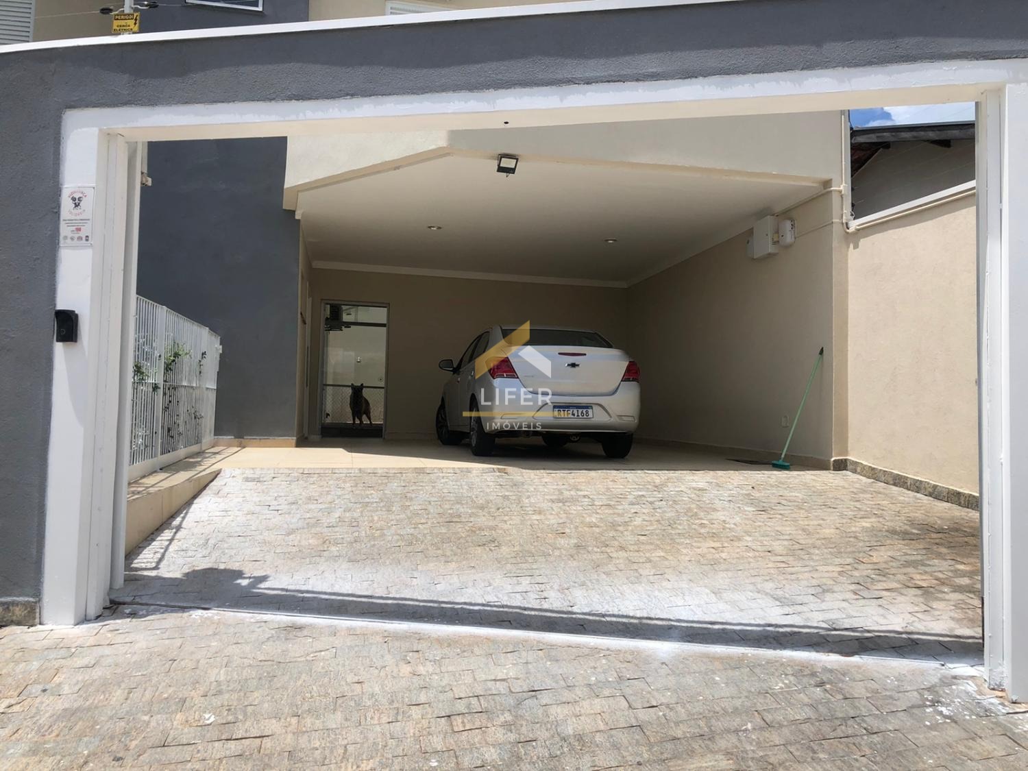 A garagem acomoda 4 carros sendo 02 cobertos, com portão eletrônico oferece segurança e praticidade.