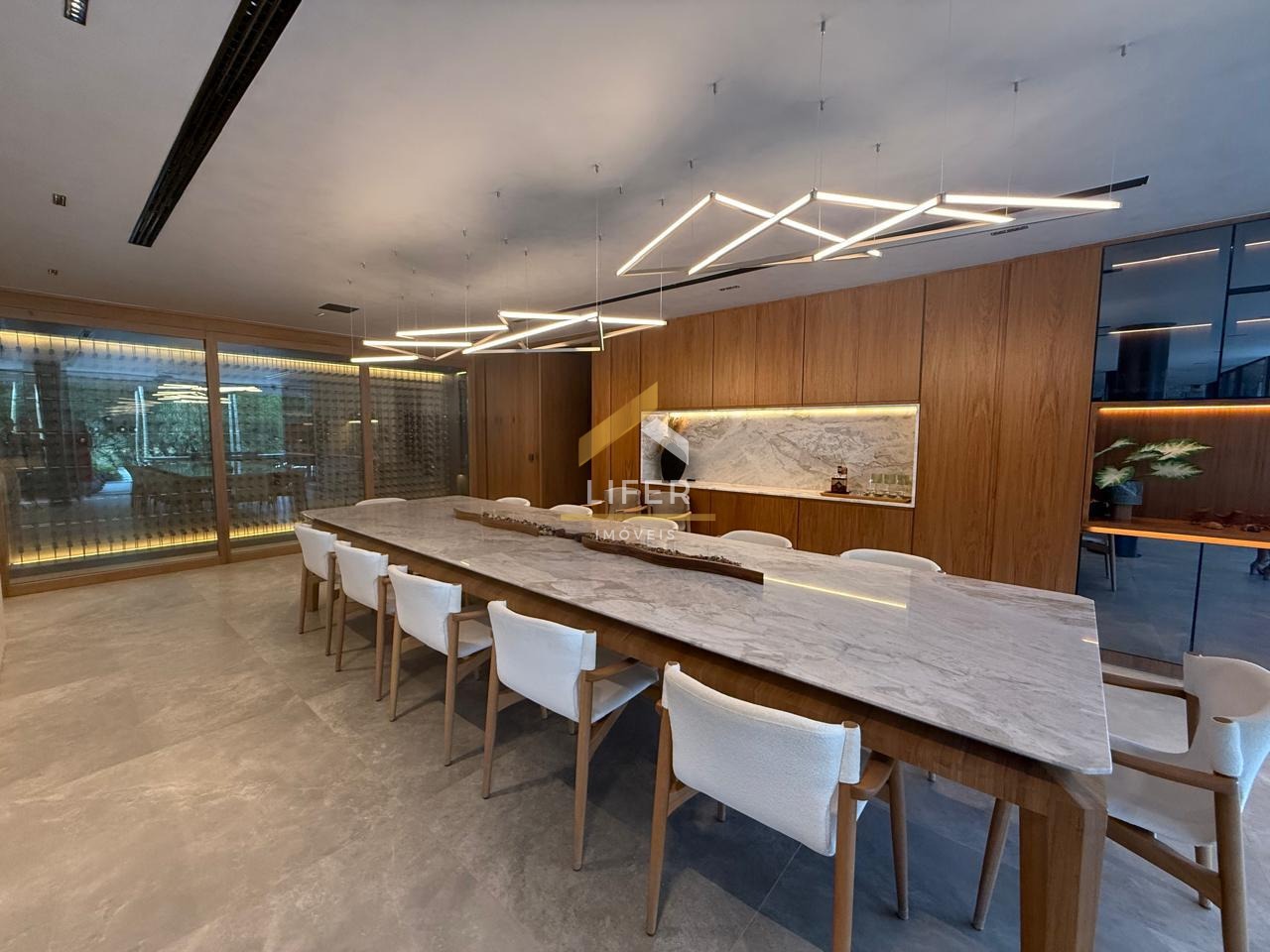 Uma oportunidade única de viver em um cenário de sofisticação e requinte, a poucos passos da tranquilidade que esse condomínio oferece. Esta deslumbrante residência é um verdadeiro ícone de luxo, combinando design contemporâneo com conforto e praticidade em cada detalhe. Com 5 suítes no térreo, todas com varandas privadas voltadas para a área externa, a casa proporciona uma experiência de privacidade e bem-estar sem igual. A suíte máster, no primeiro andar, é um verdadeiro oásis, com mini cozinha, sala, dois closets, dois banheiros e uma varanda periférica que oferece uma vista espetacular da piscina. O imóvel foi projetado para agradar os mais exigentes, com uma sala de estar que exibe uma adega Art Decaves com capacidade para quase 700 garrafas, e móveis de renomadas marcas como Breton, Jader Almeida e Artefacto, criando uma atmosfera sofisticada e acolhedora. O lavabo é um espetáculo à parte, com espelho Studio Orth e cuba Jader Almeida, que garantem um toque de exclusividade.