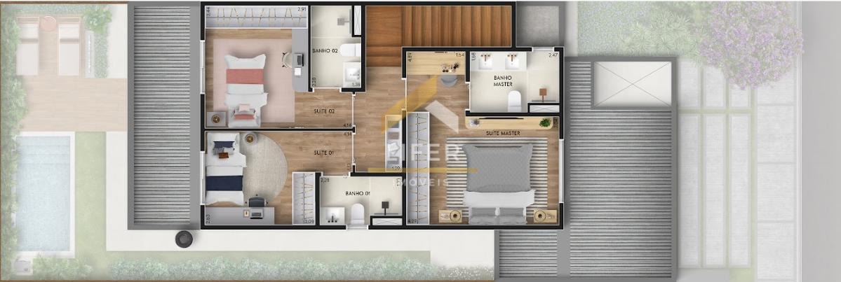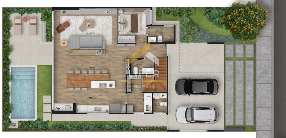 Duas opções de metragens: 160 e 195 m², com terrenos padrão de 176 e 244 m², há terrenos maiores.
