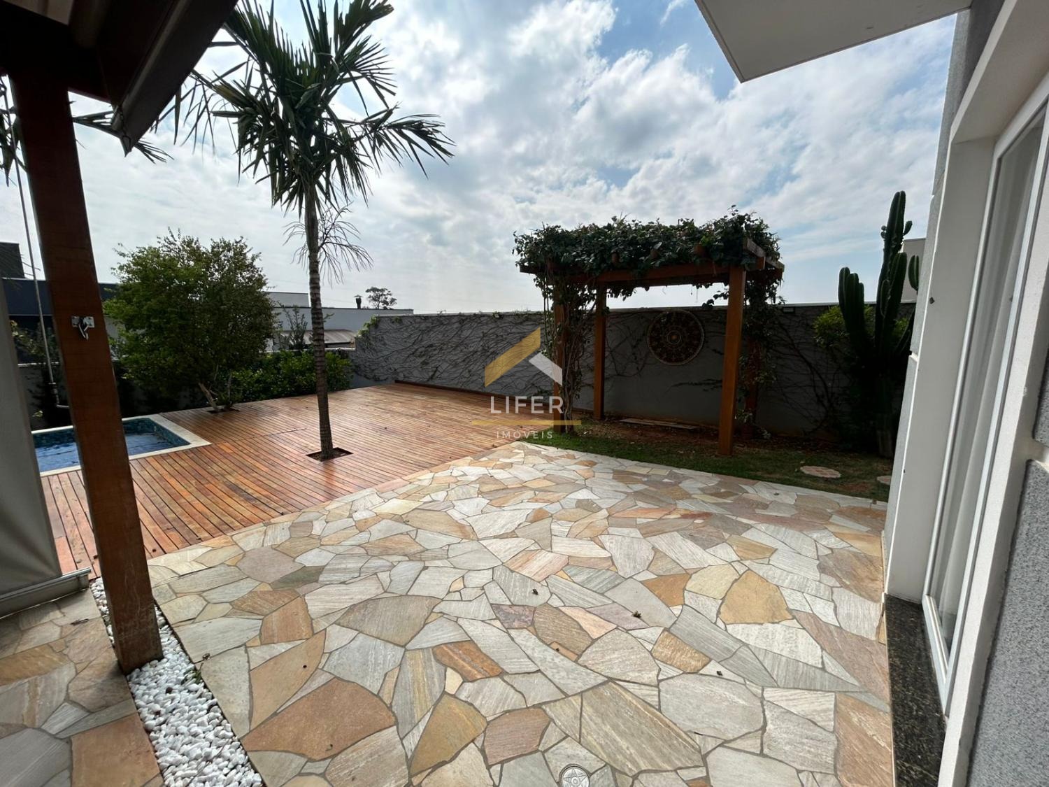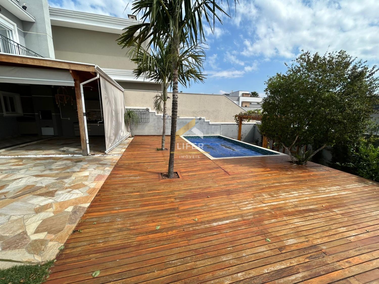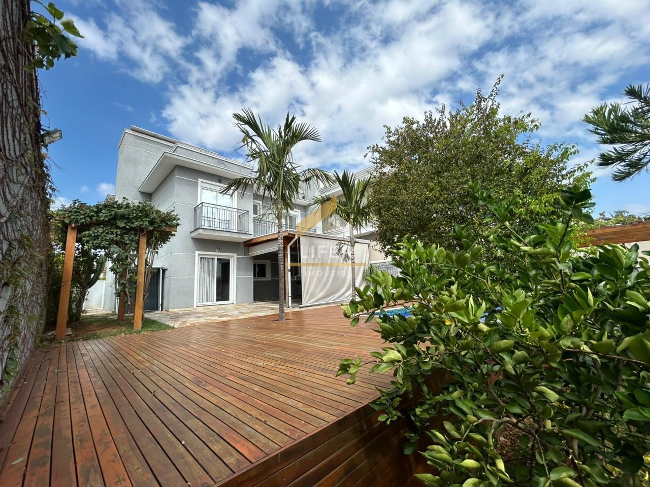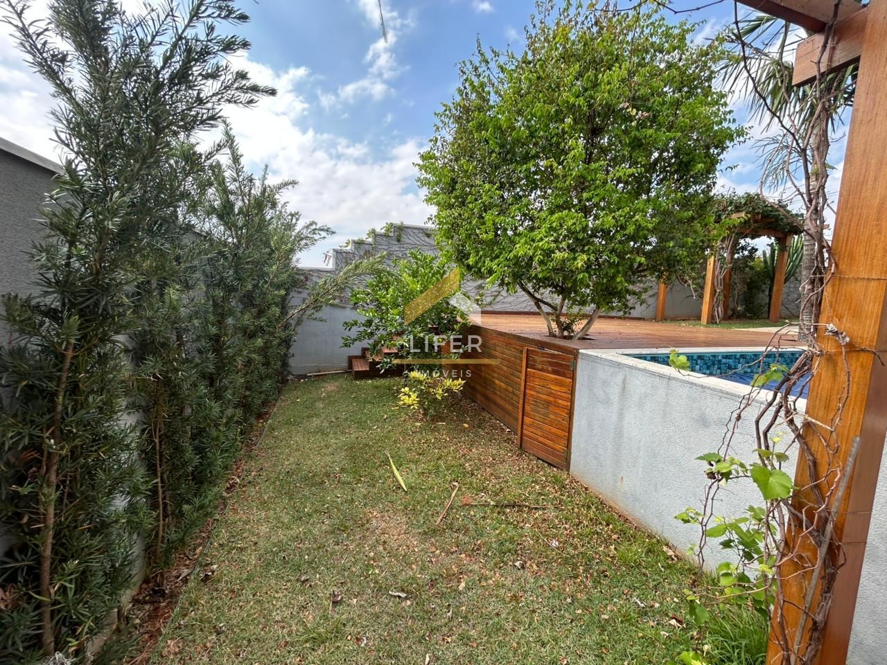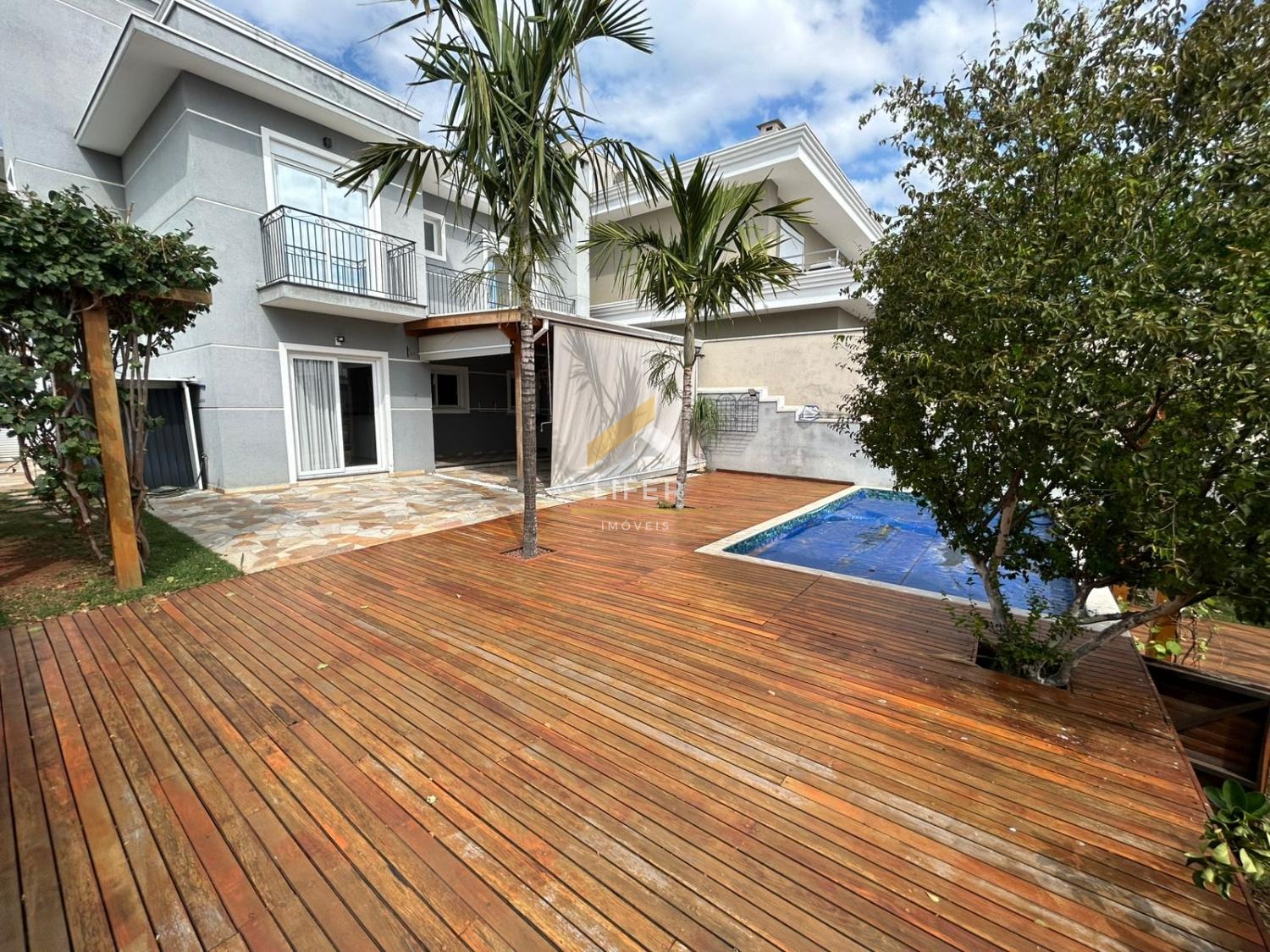 O lazer é completo dentro do próprio lar: deck de madeira com pomar, piscina privativa e espaço para relaxar em contato com a natureza.