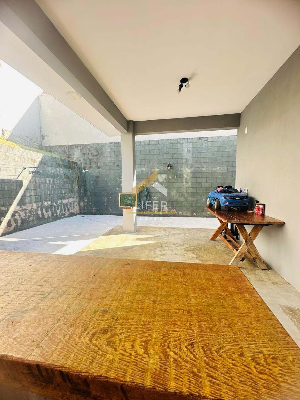 Nos fundos, um quintal generoso convida para momentos de lazer com área gourmet equipada com churrasqueira e banheiro externo (em fase final de acabamento). Há ainda espaço reservado para a construção de uma jacuzzi ou uma pequena piscina, ideal para relaxar nos dias de verão.