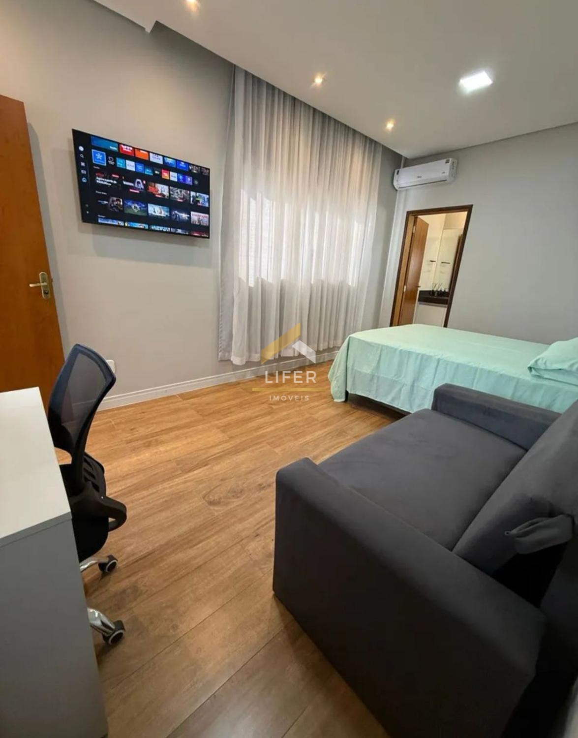 1 suíte espaçosa com ar-condicionado e banheiro privativo de alto padrão
