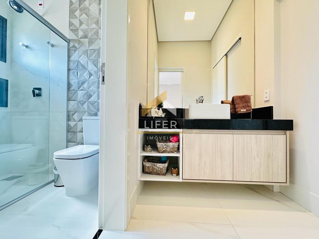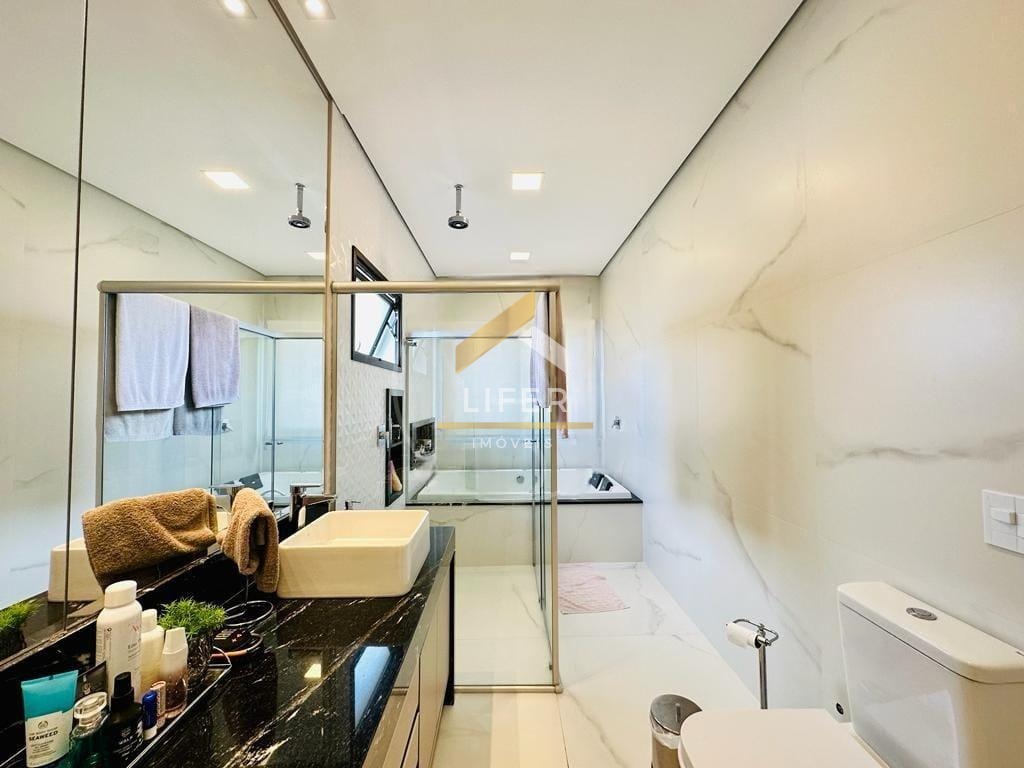 No piso superior está a área íntima da casa, composta por quatro dormitórios, sendo três suítes, incluindo uma magnífica suíte máster com closet espaçoso e acabamento refinado.
