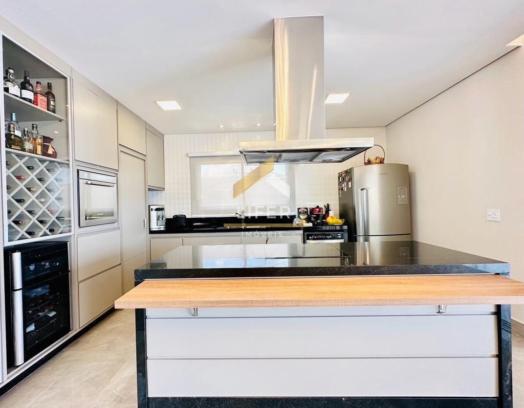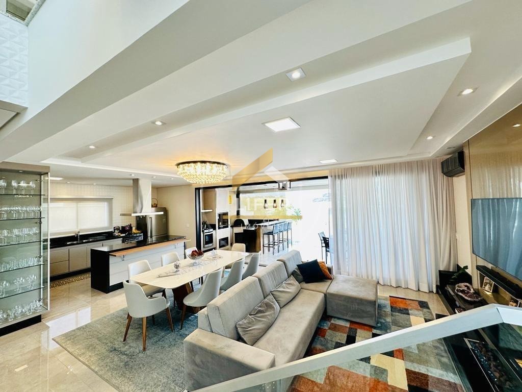 Com projeto moderno e imponente, esta residência encanta logo na entrada, com um hall de pé-direito duplo que valoriza a iluminação natural e amplia a sensação de espaço. O conceito de integração entre os ambientes proporciona uma experiência única de conforto e sofisticação. O living é amplo, ideal para dois ambientes, e se conecta harmoniosamente à sala de jantar, à cozinha planejada — equipada com coifa, cooktop de indução e ilha central — e ao espaço gourmet completo, com churrasqueira, forno de pizza e vista para a linda piscina aquecida. O pavimento térreo conta ainda com lavabo, escritório funcional, banheiro social e lavanderia.