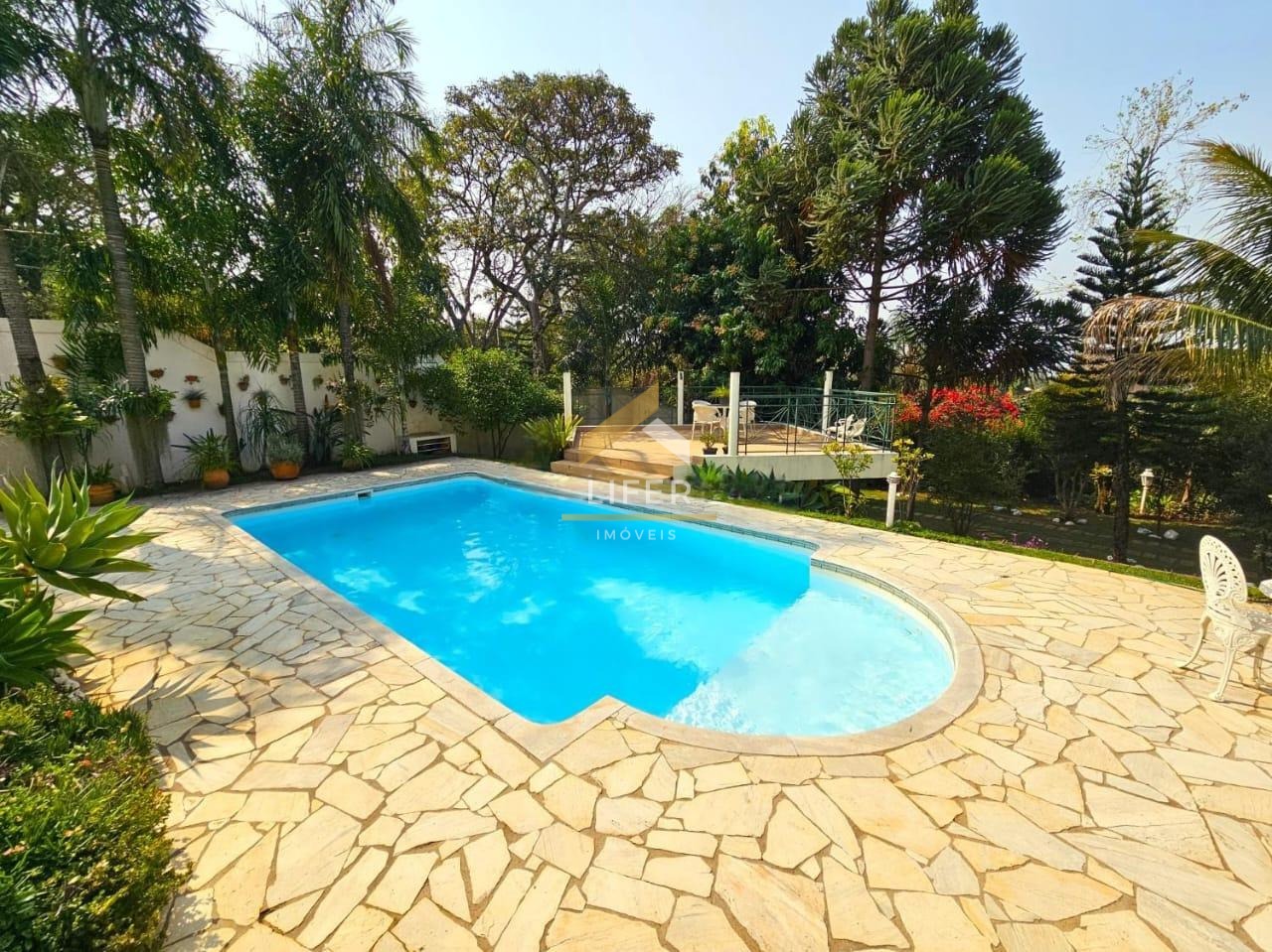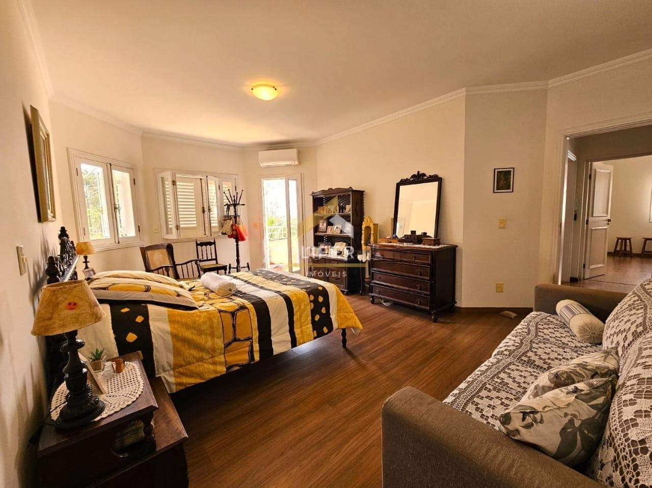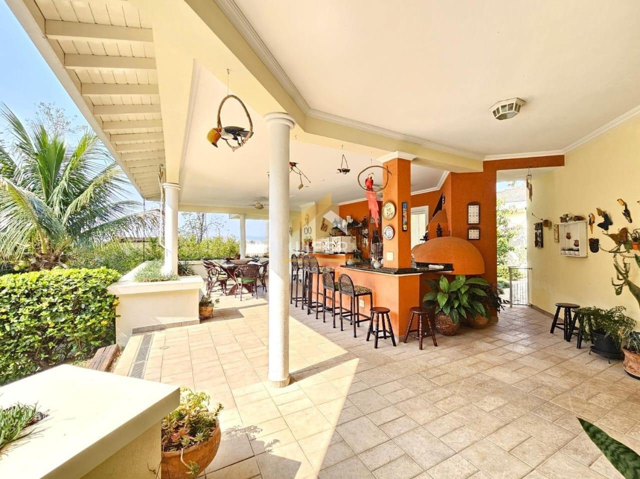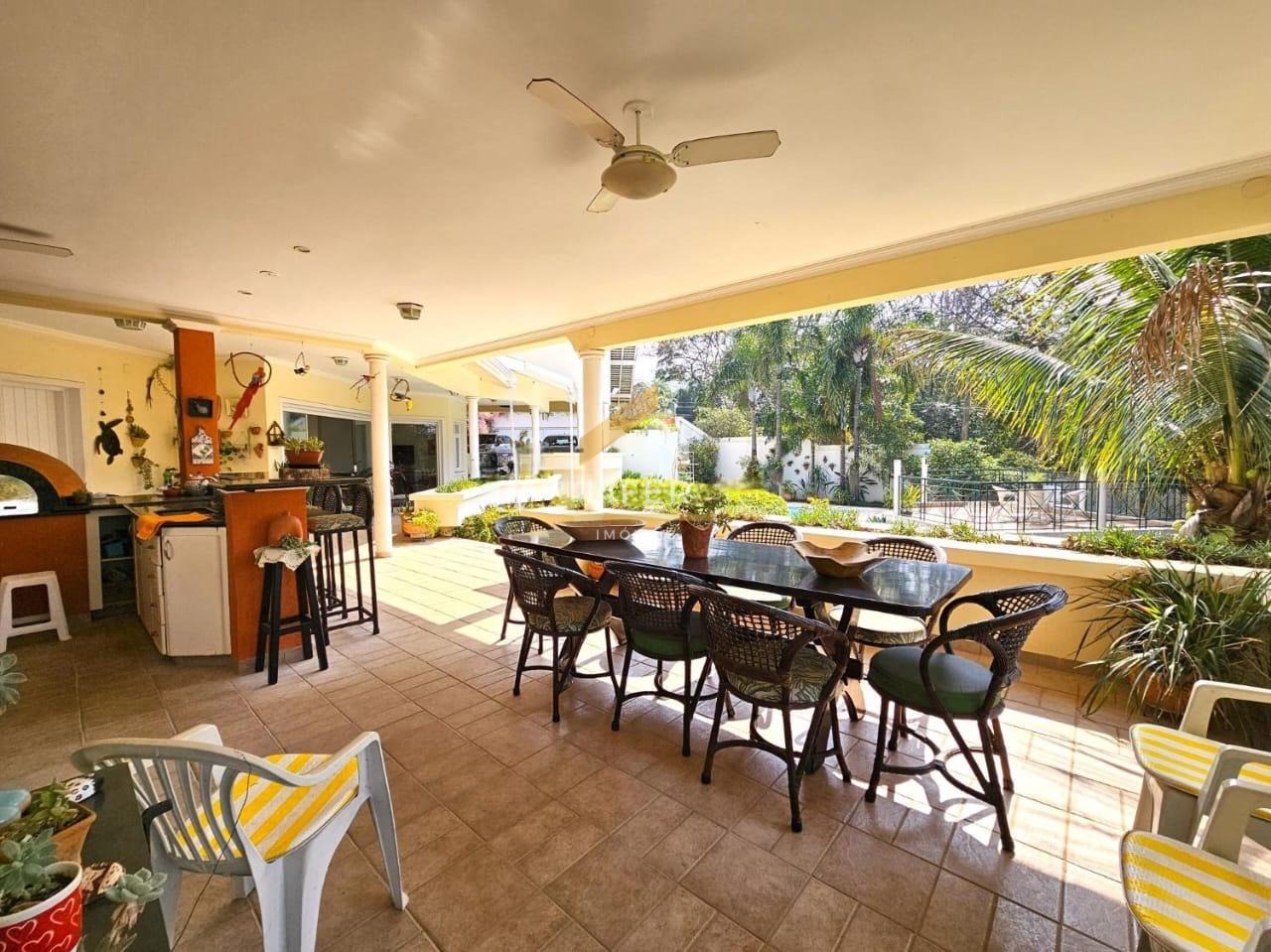 A área externa é um grande destaque, com varandas avarandadas e floreiras que emolduram o paisagismo. A varanda gourmet é completa, equipada com churrasqueira, forno a lenha e forno de pizza, perfeita para momentos de lazer. O imóvel ainda conta com sala de ateliê, sala de ginástica, garagem para cinco veículos, piscina com prainha e aquecimento solar, sauna com banheiro e ducha, além de um deck panorâmico em porcelanato.