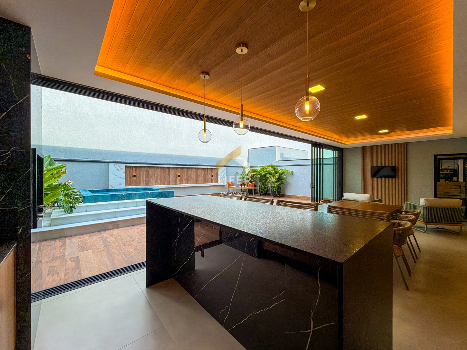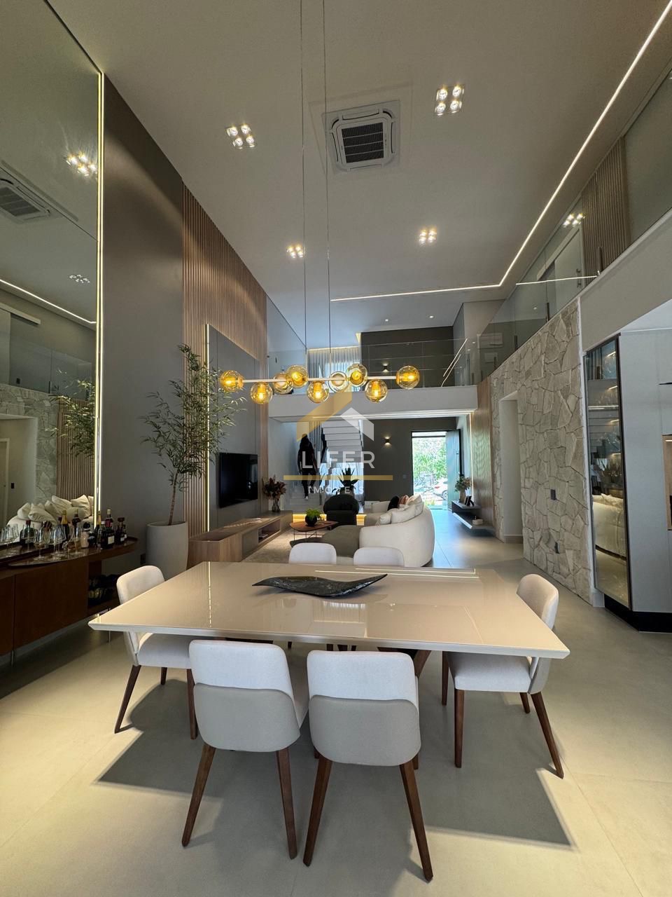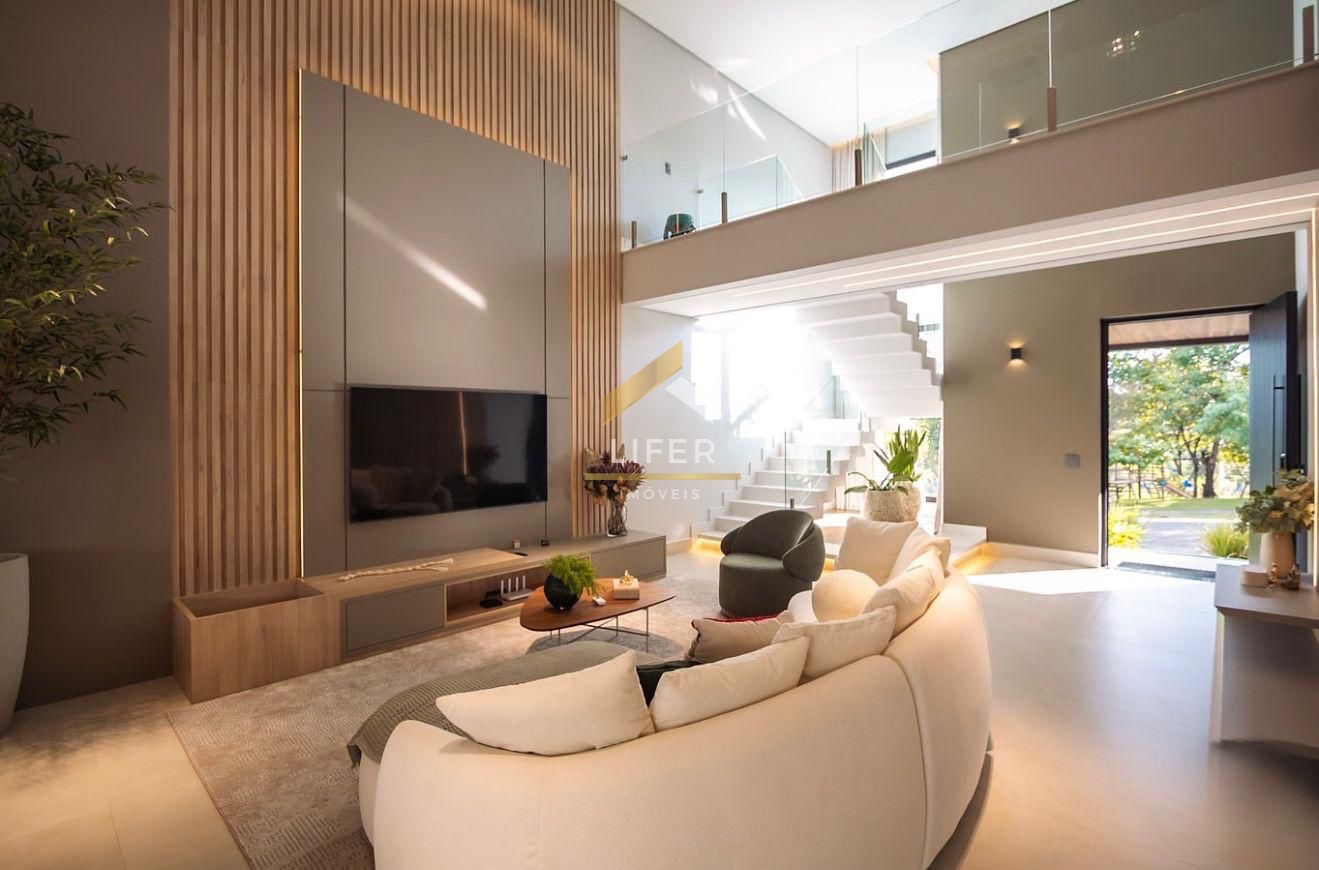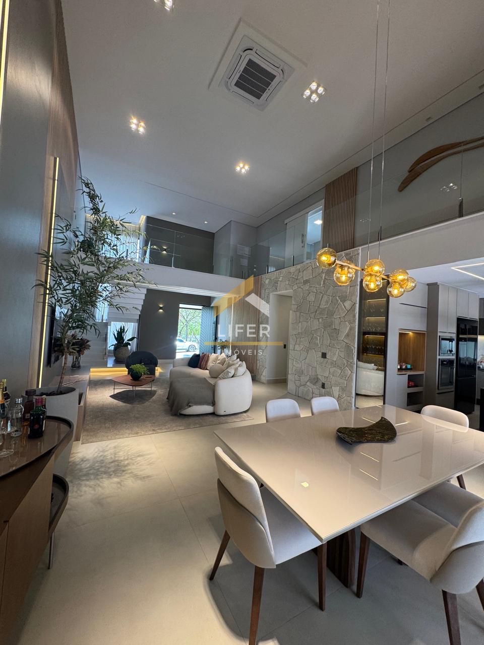 O imóvel conta com quatro suítes, sendo uma no pavimento inferior e três no pavimento superior, oferecendo excelente distribuição dos ambientes e conforto para toda a família. Possui ar-condicionado central, sistema de energia fotovoltaica, boiler e pressurizador, garantindo eficiência energética e comodidade no dia a dia.