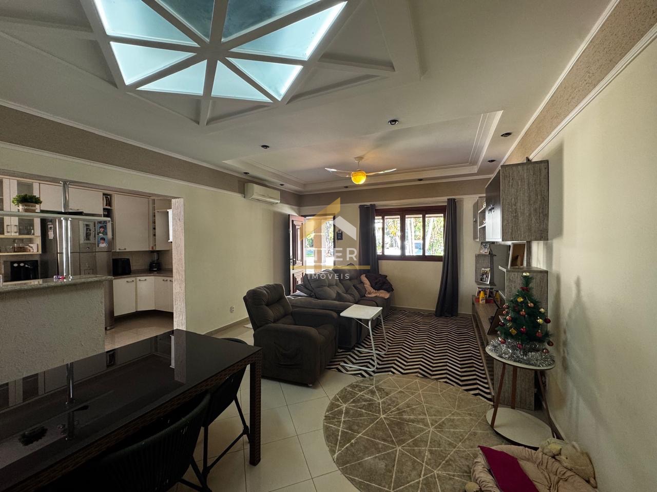 Sala de jantar com ar-condicionado, sanca com iluminação, ambientes integrados a cozinha, tornando-o amplo e boa área social.