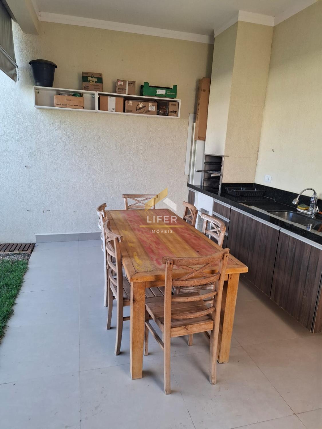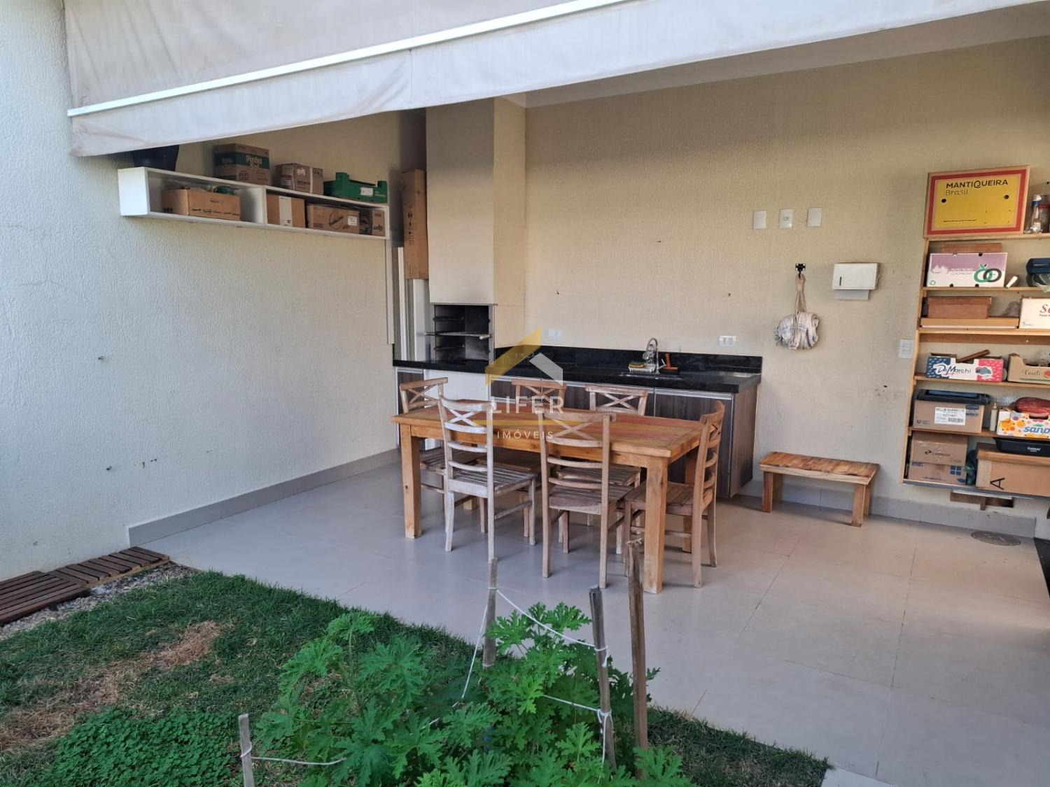 O quintal é um dos destaques do imóvel, com portão lateral independente, churrasqueira, pia com bancada, tanque de louça e armários com portas de alumínio, ideal para momentos de lazer e confraternização.