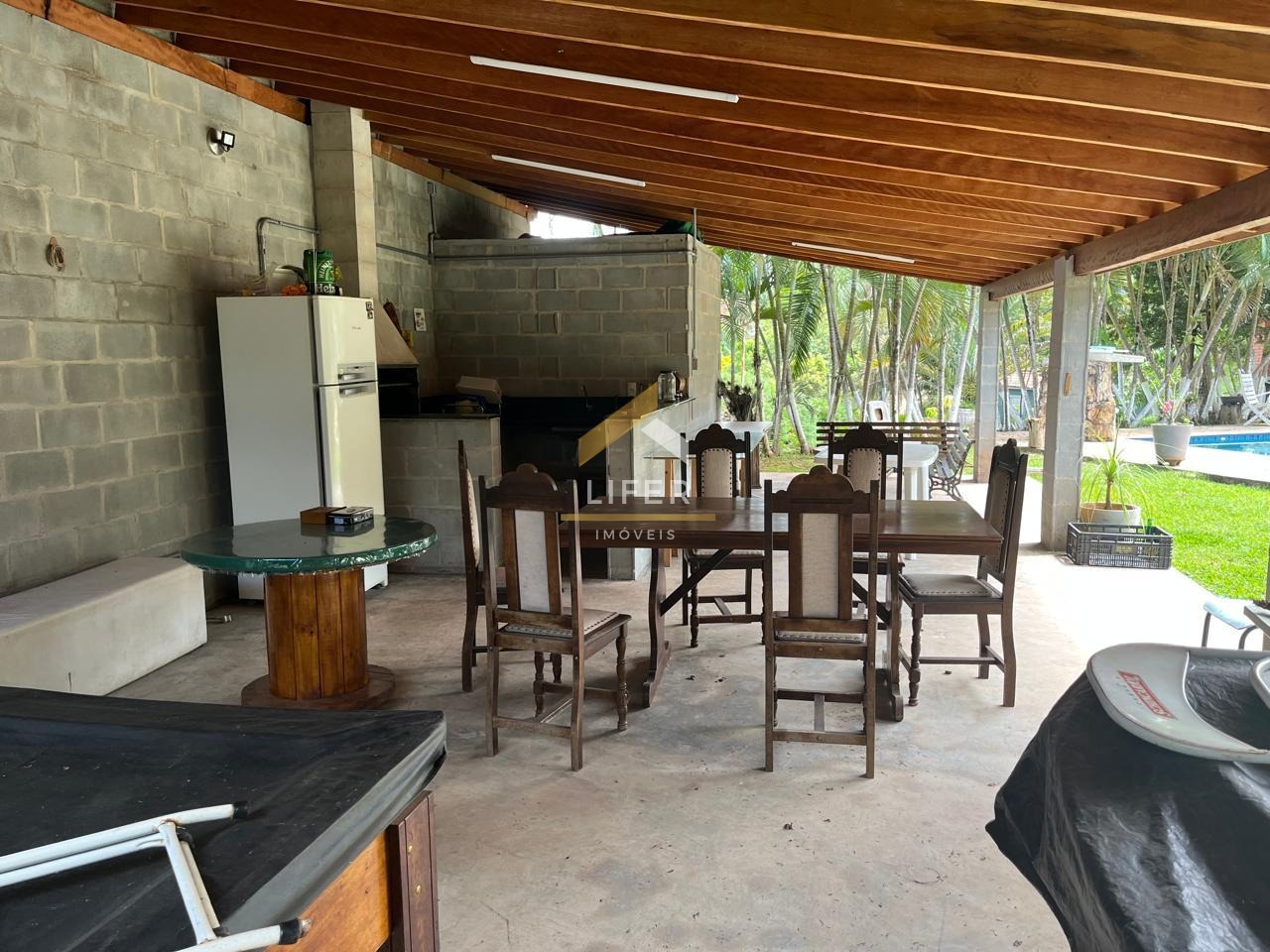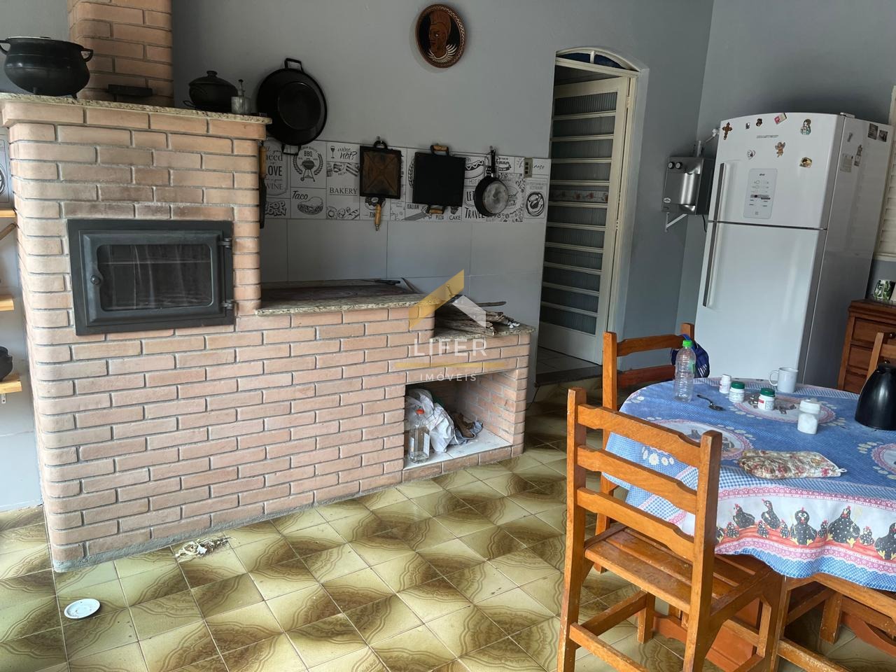 2 cozinhas (uma com fogão a lenha e outra estilo sala de jantar)