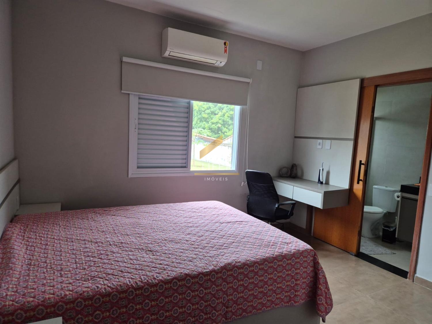 A área construída conta com uma suíte ampla, mais dois dormitórios bem distribuídos, atendidos por um banheiro social. A sala integra-se à cozinha, criando um ambiente funcional e confortável para convivência. Dois dos dormitórios já possuem ar-condicionado instalado, garantindo mais conforto térmico durante todo o ano.