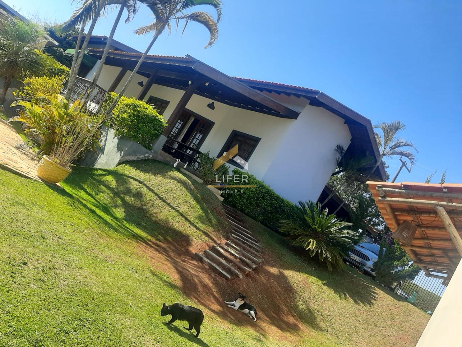 A área externa é completa e muito bem planejada. A piscina, com capacidade para 45.000 litros, proporciona lazer para toda a família. O espaço gourmet conta com churrasqueira, fogão a lenha e um banheiro externo, perfeito para receber convidados. A propriedade ainda dispõe de área de serviço, canil, paisagismo impecável e pomar em formação, agregando charme e funcionalidade ao terreno.
