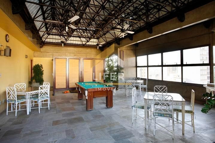 A infraestrutura do condomínio é completa e voltada ao lazer e bem-estar, com piscina aquecida no rooftop, churrasqueira com vista panorâmica, academia, saunas úmida e seca, salão de jogos com mesa de sinuca profissional e salas de reuniões. Entre as facilidades inclusas estão o serviço de camareira, recepção 24 horas, restaurante interno e garagem com manobrista.