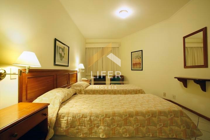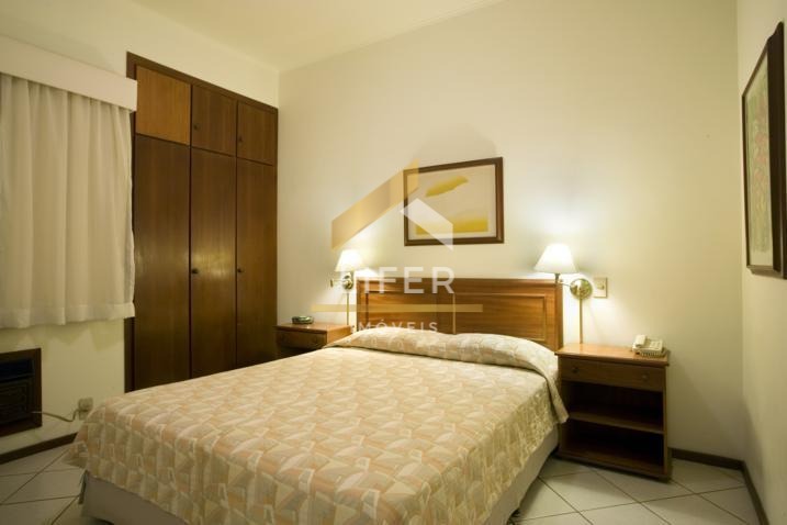 A unidade conta com dormitório planejado com cama de casal, armários e ar-condicionado, além de uma sala modificada com sofá bicama que permite acomodar confortavelmente até quatro pessoas. A cozinha é no estilo americano, equipada com frigobar e armários planejados. O banheiro dispõe de box blindex e secador de parede, e o morador ainda conta com a segurança de um armário embutido com cofre privativo.