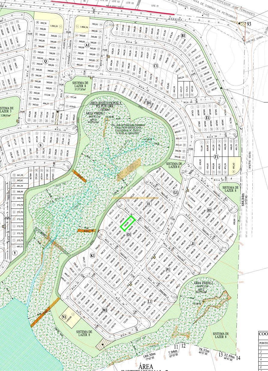 Este terreno de 360 m² está localizado no coração do condomínio, em uma rua sem saída com vista para uma área de preservação permanente, proporcionando tranquilidade, privacidade e um nascer do sol espetacular.