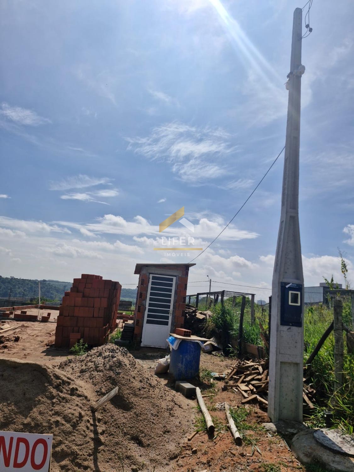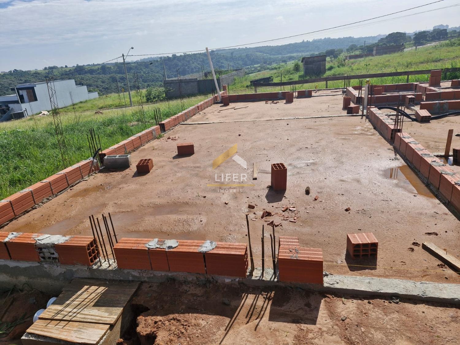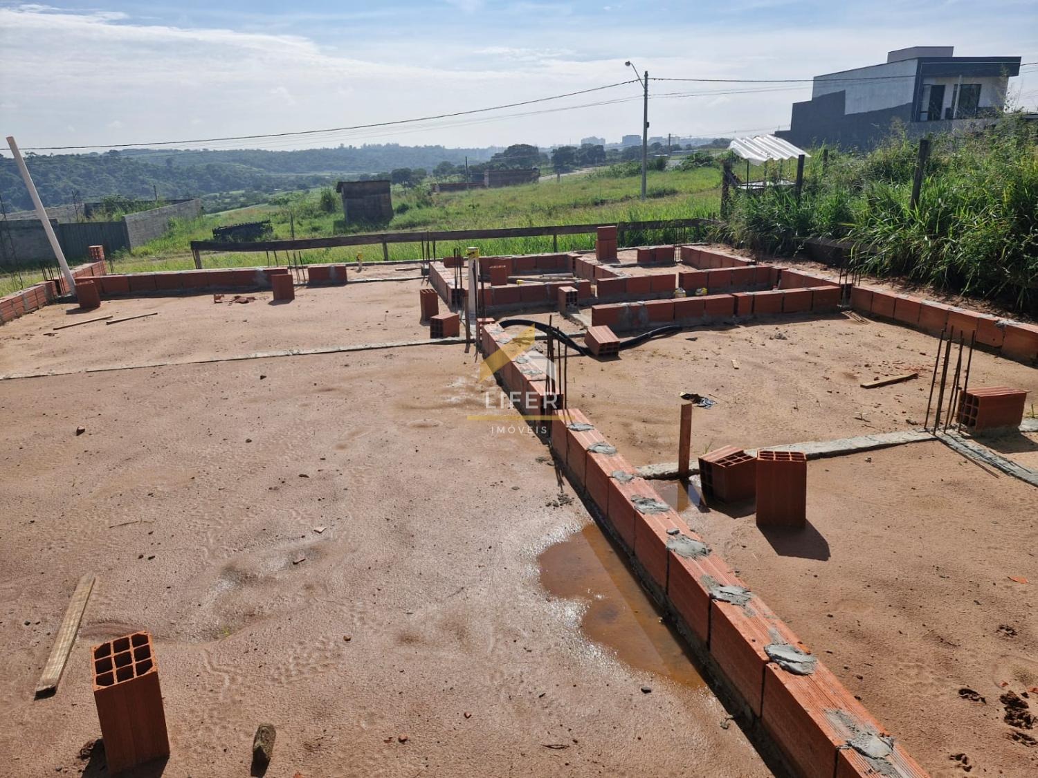 Fundação concluída para um sobrado com piscina. Alvará aprovado. Projeto arquitetônico e estrutural. Hidráulica do esgoto e águas pluviais concluída. Poste cpfl instalado com energia ligada.