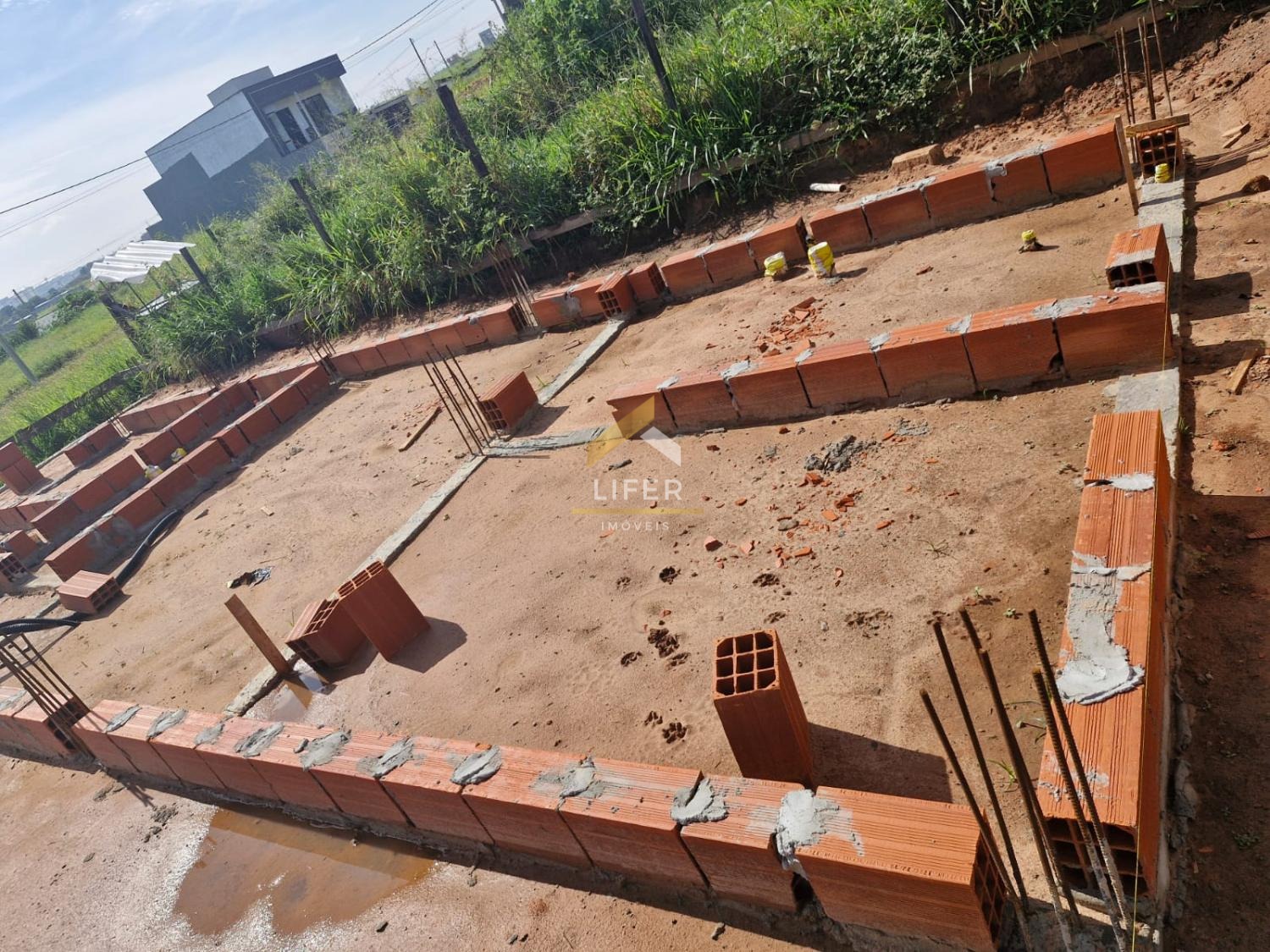 2.000 blocos no local (suficientes para a alvenaria do primeiro pavimento)